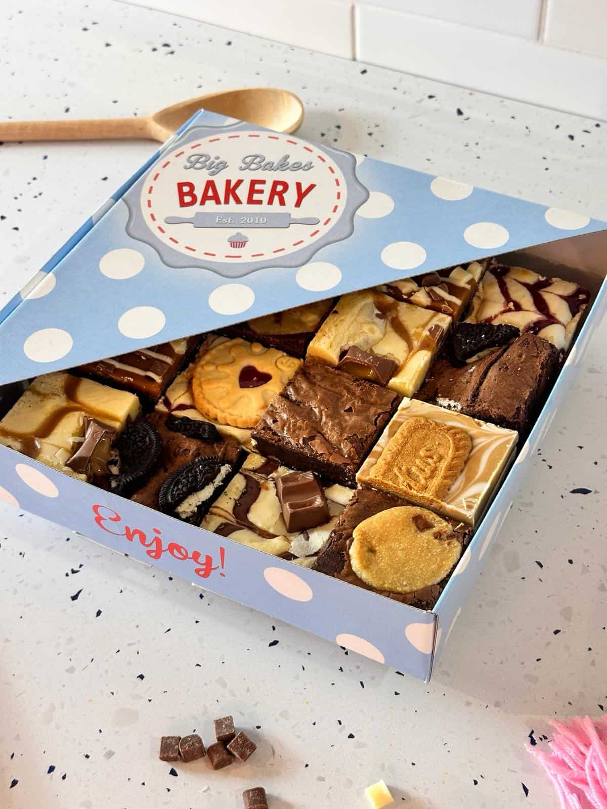 Including Triple Chocolate Brownie, Billionaires Flapjack, Cookie Dough Brownie, Biscoff Millionaires Cookie, Oreo Brownie, Nutella Blondie, Raspberry and White chocolate Blondie, Biscoff Blondie, Salted Caramel Brownie, Funfetti Blondie, Milkybar Millionaires Cookie, Bakewell Blondie,…