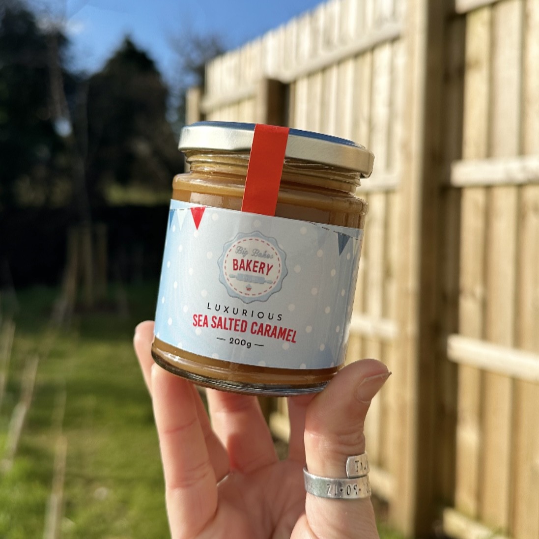 A jar of our delicious salted caramel. Perfect for baking, dessert topping or straight off the spoon!
